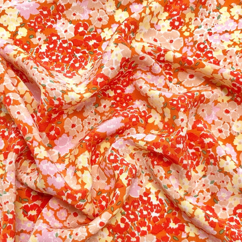 Multicoloured Large and Small Floral Polyester Crepe Fabric - available now at the UK's lowest price!
