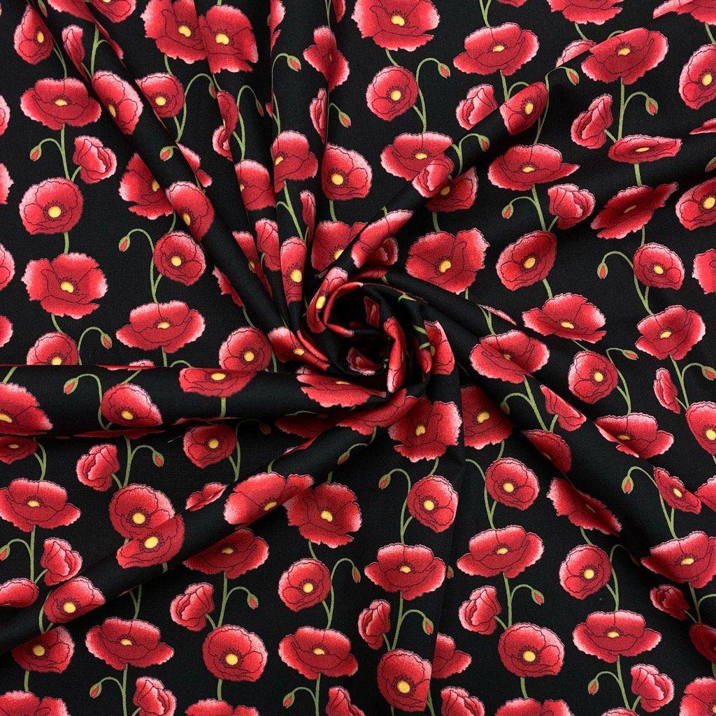 A Rose & Hubble cotton poplin fabric featuring a poppy print available in 3 colours. Suitable for tops, skirts, dresses, accessories and more!