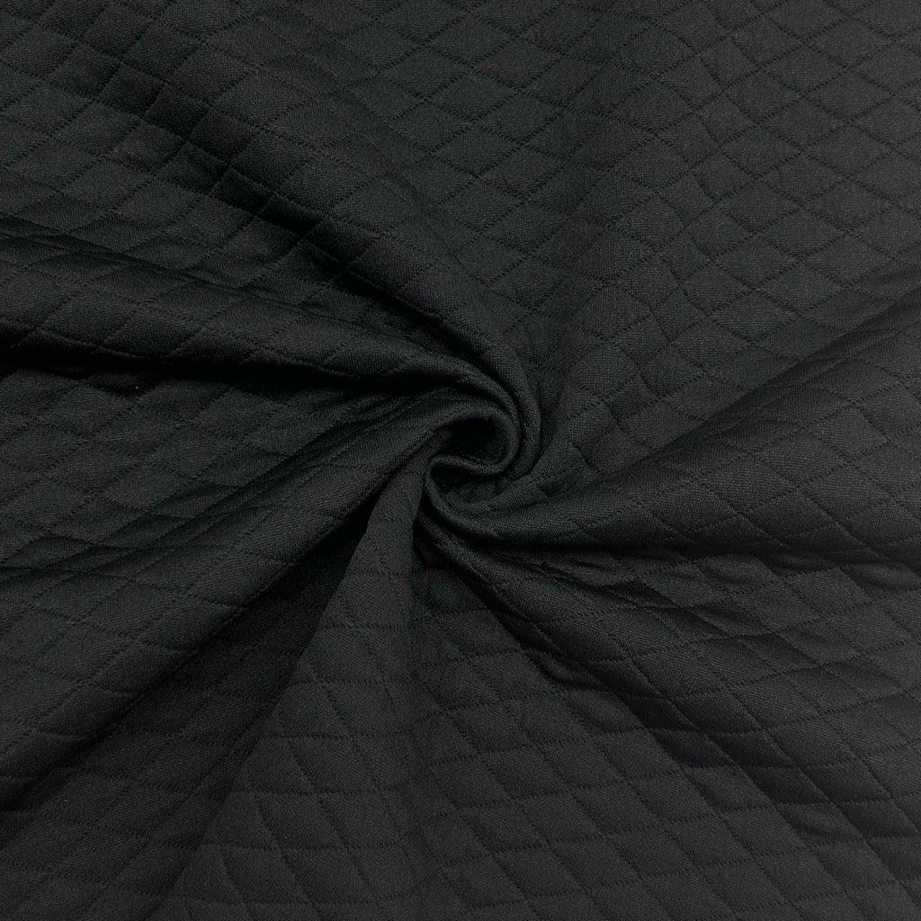 Our Quilted Jersey Fabric is available in the colours: Black, White, Ivory, Navy, Dark Grey, Melange